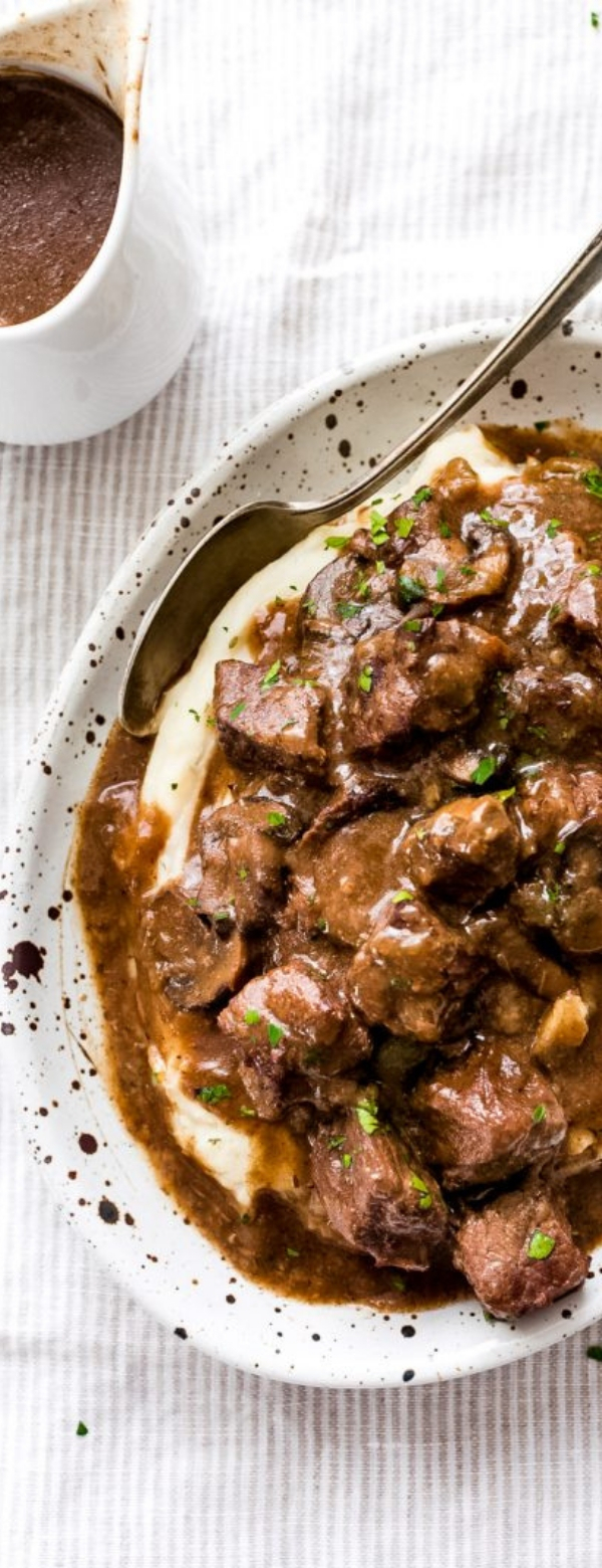 - 2 pounds chuck roast, trimmed+ cubed (or stew meat works too)